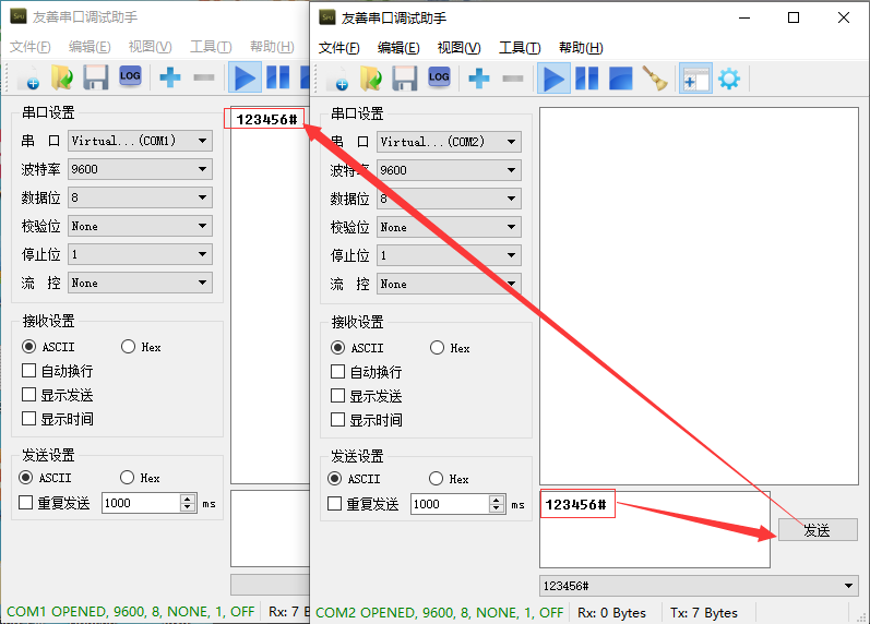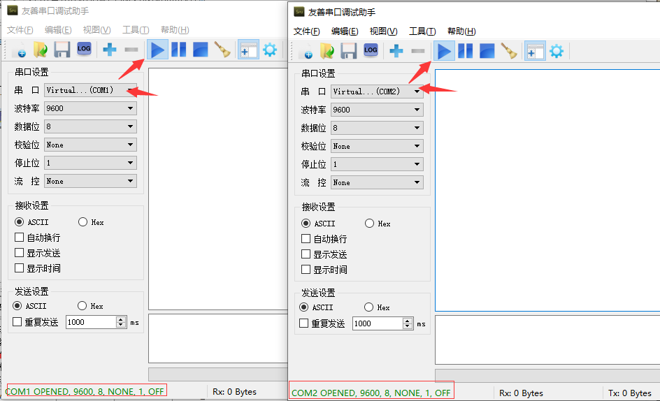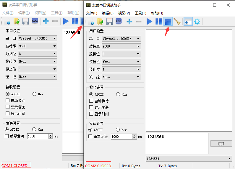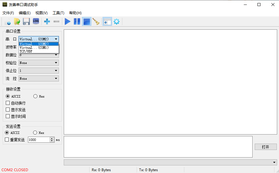 打开串口调试助手,会发现可选择的串口中多出了COM1/COM2