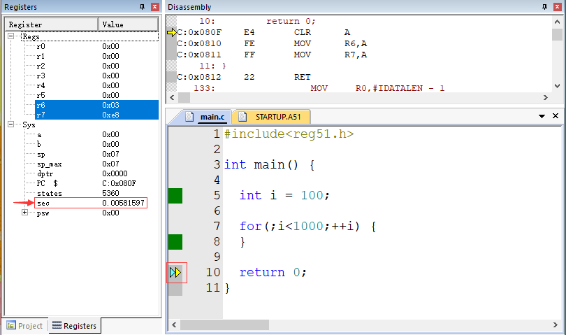 step_6 可以在左侧窗口看到该段程序运行的时间