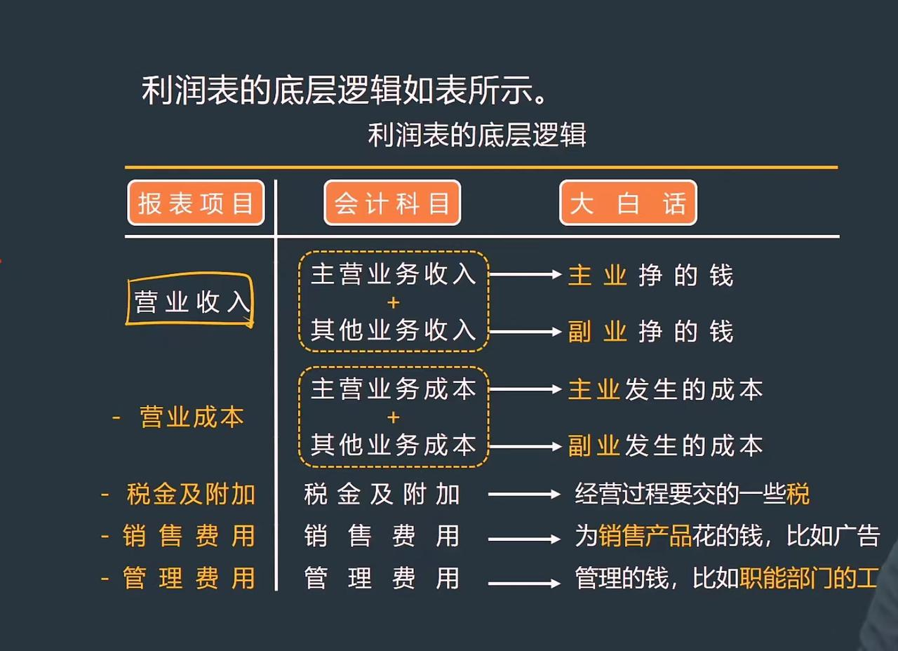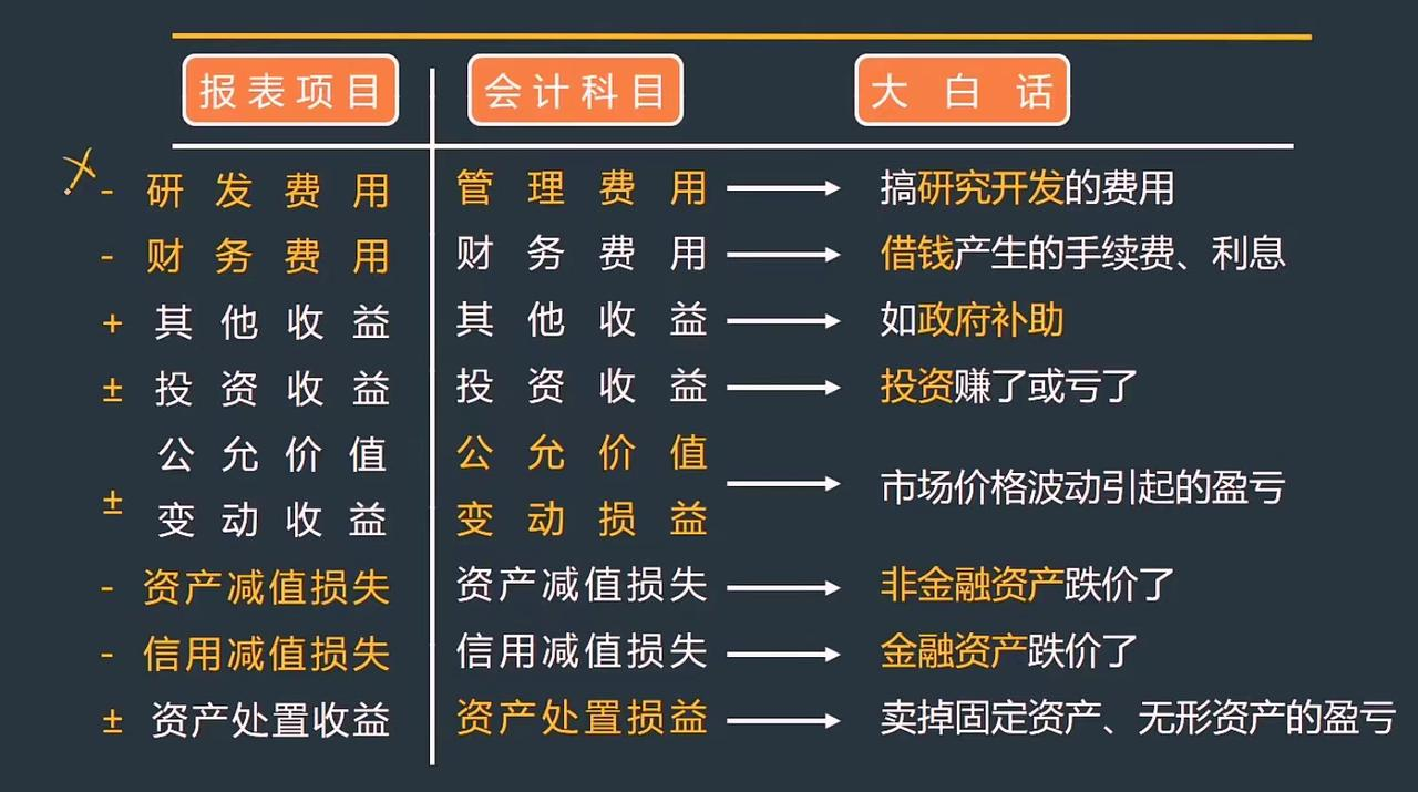 营业利润口诀:营业收入减成本,减去税金和四费,减去两损四收益。