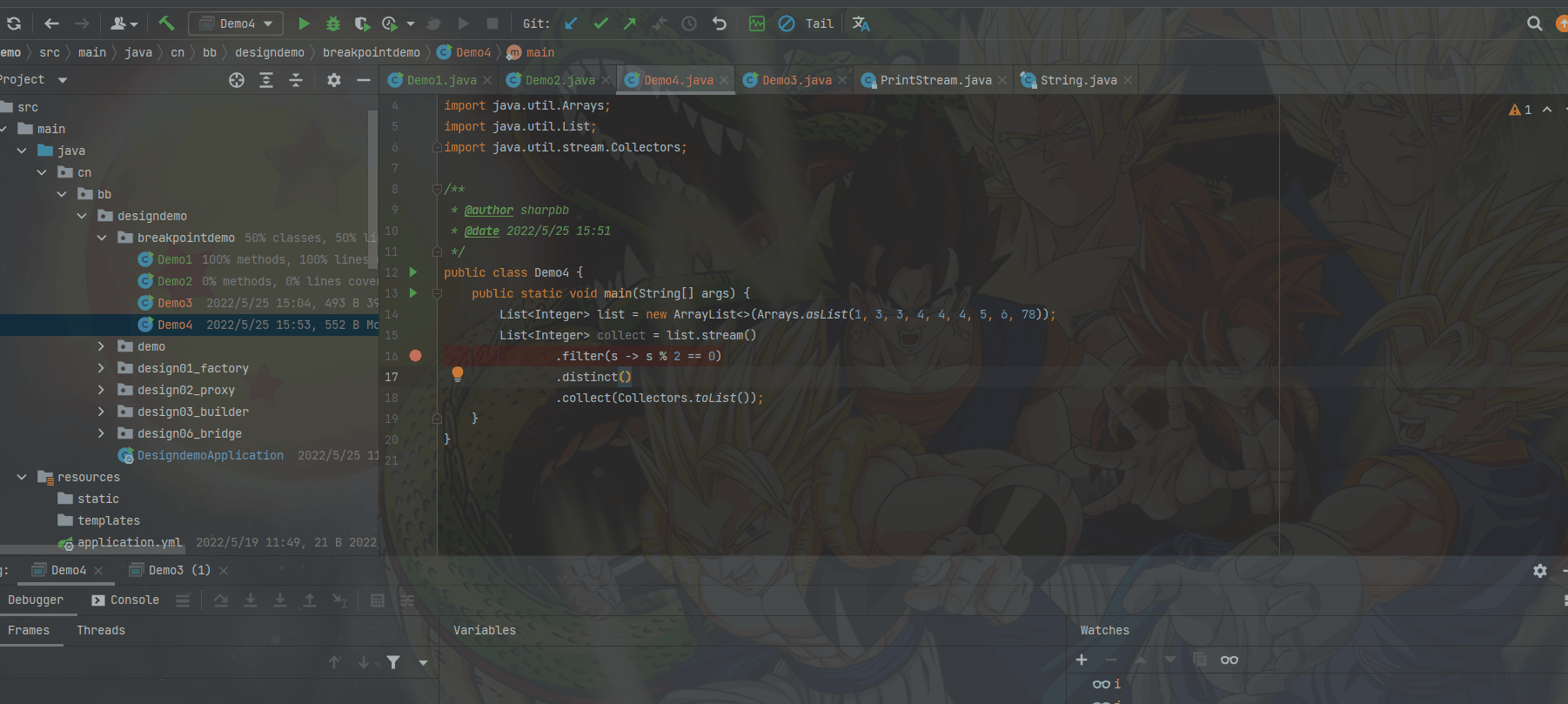 我们使用流的时候,很难看到中间做了什么,但其实idea就帮我们解决了,我用断点调试下面代码,给大家演示下。