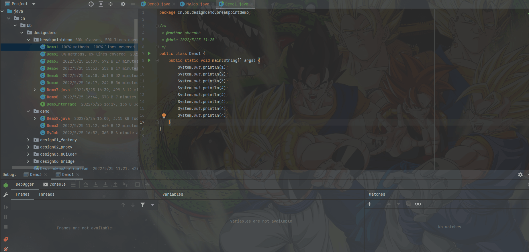 案例中,有一个接口DemoInterface,它有两个实现类,让我们看下效果吧,演示如下。