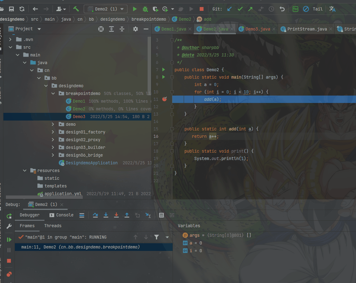 这里省略了普通的行断点调试,毕竟是最简单的,大家都会。