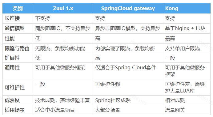 (2)Zuul1.x 网关:Zuul 1.0 的落地经验丰富,但是性能差、基于同步阻塞IO,适合中小架构,不适合并发流量高的场景,因为容易产生线程耗尽,导致请求被拒绝的情况