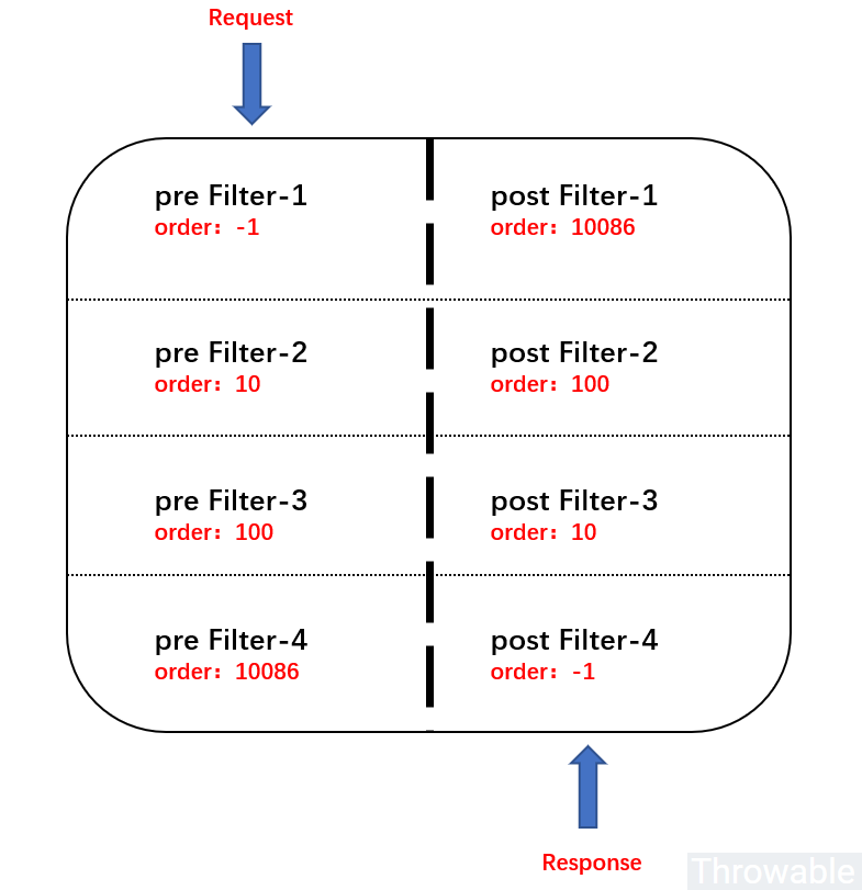 - 断言(Predicate):参照 Java8 的新特性Predicate,允许开发人员匹配 HTTP 请求中的任何内容,比如请求头或请求参数,最后根据匹配结果返回一个布尔值。