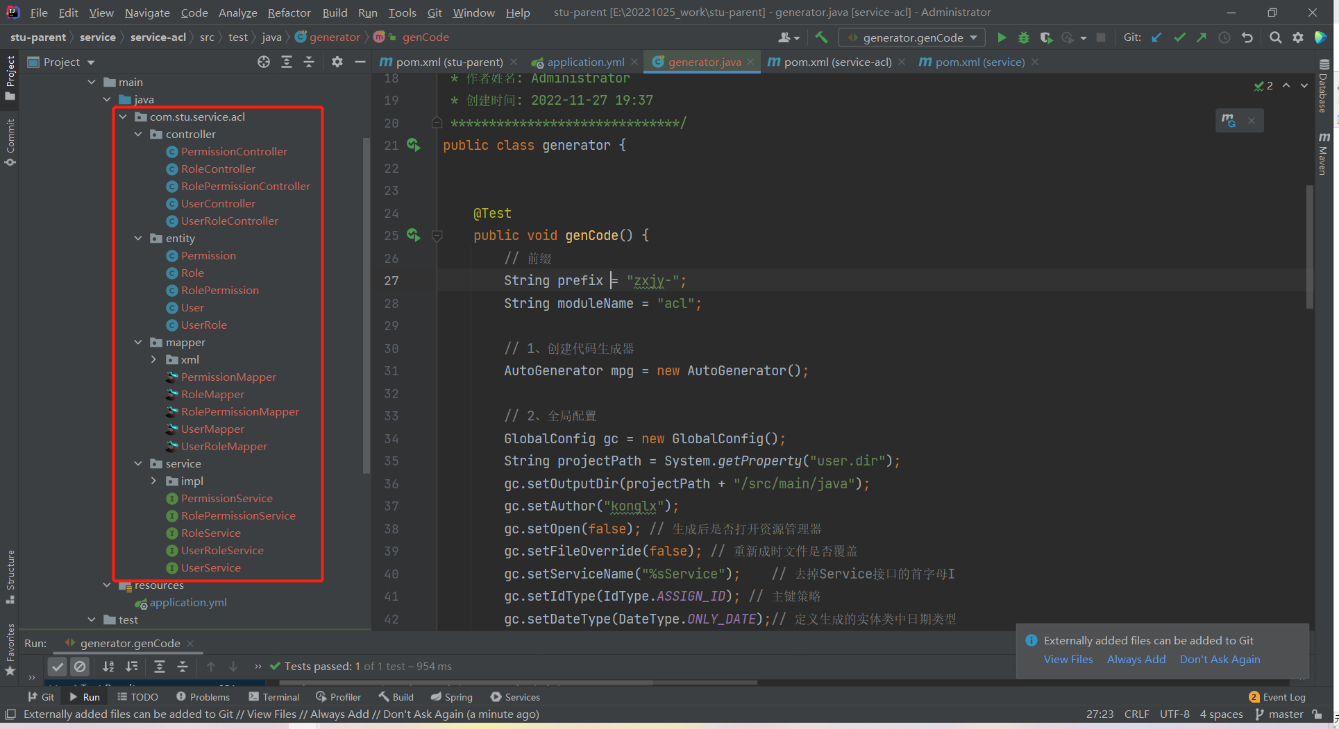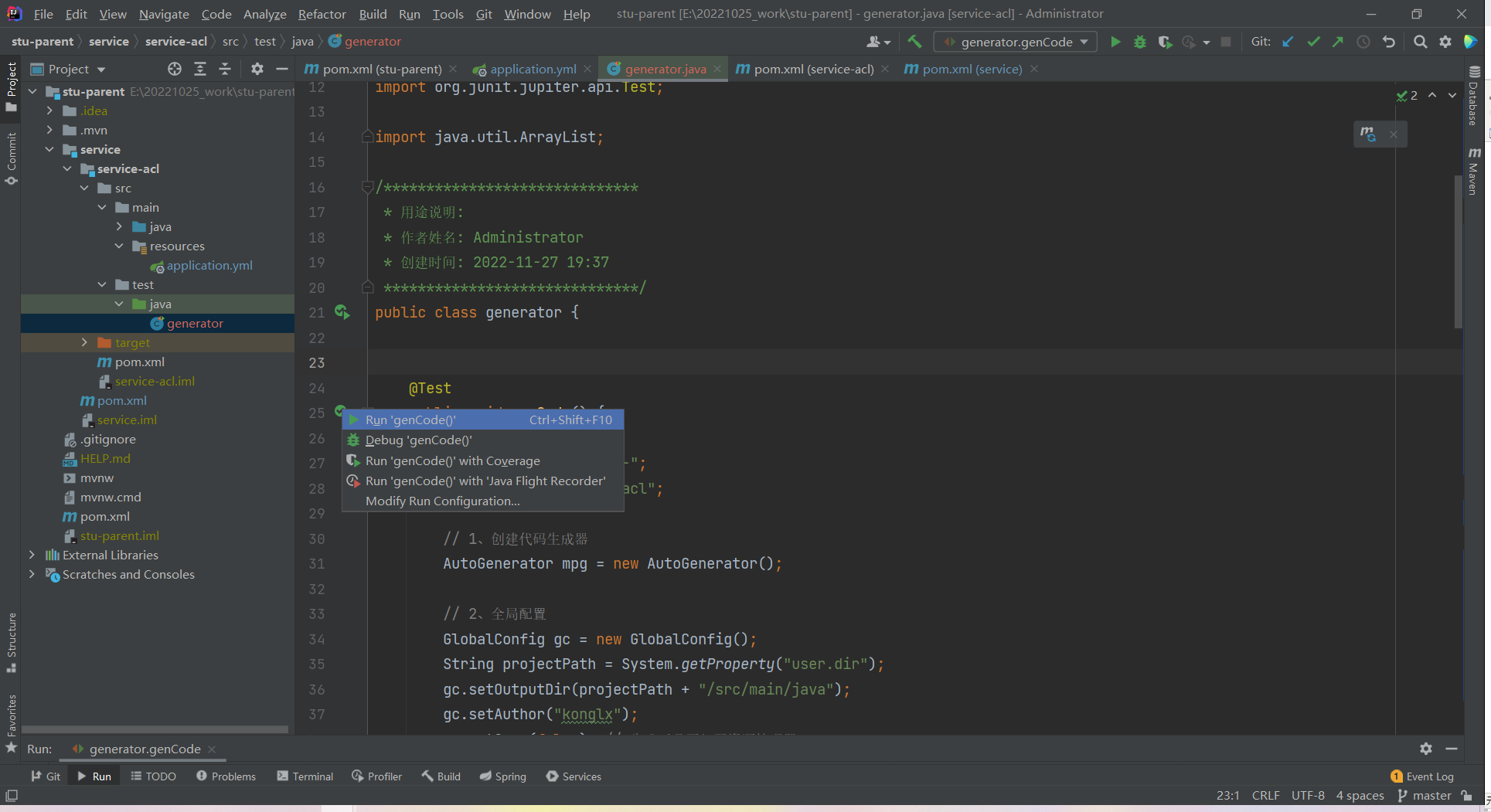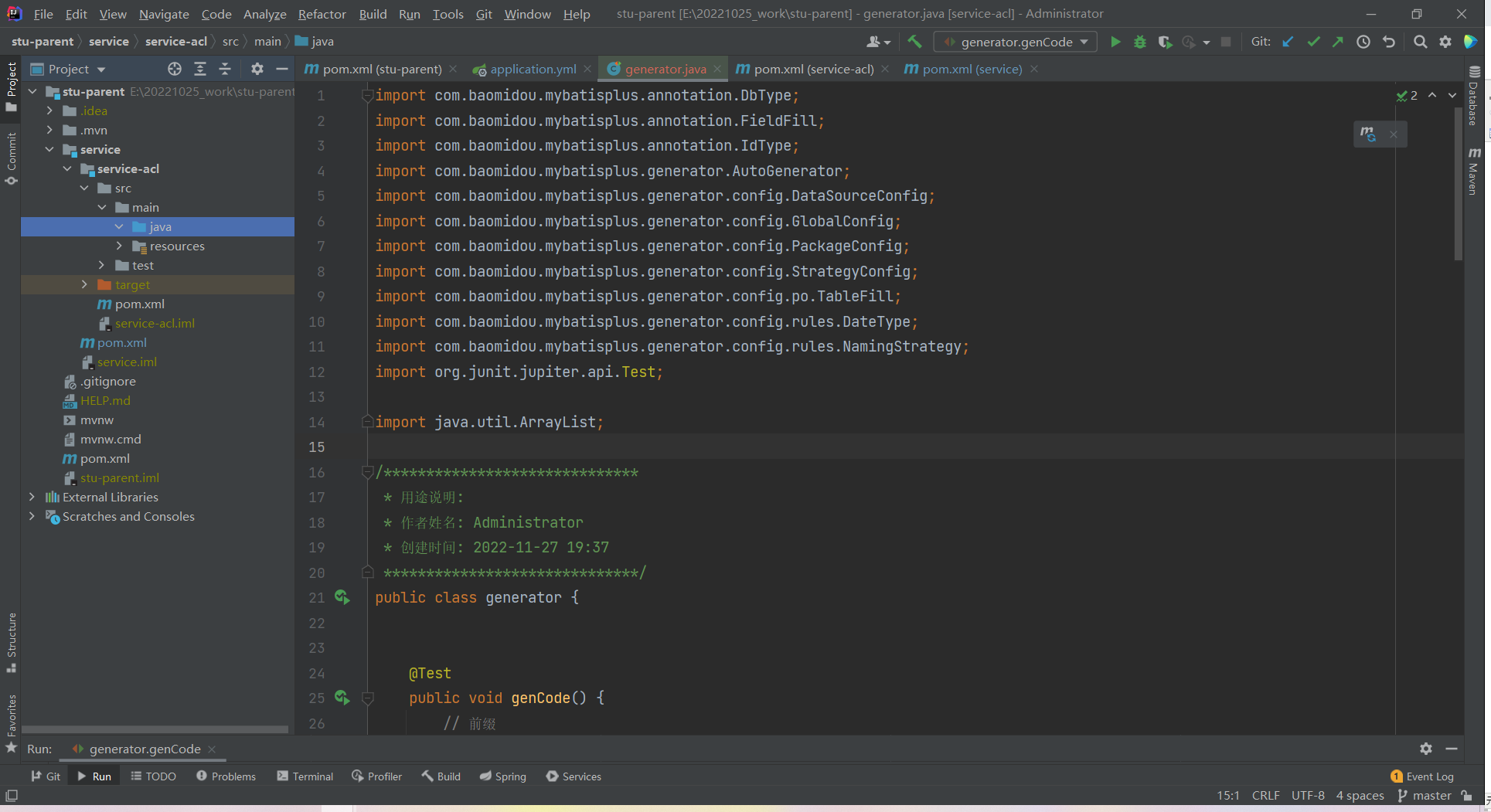 // 1、创建代码生成器