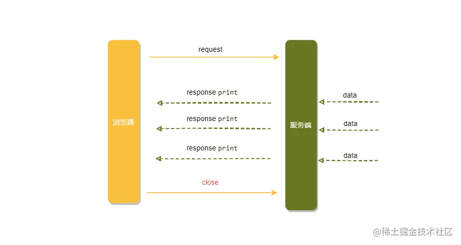 SSE它是基于HTTP协议的,我们知道一般意义上的HTTP协议是无法做到服务端主动向客户端推送消息的,但SSE是个例外,它变换了一种思路。