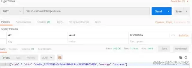 使用postman请求,首先访问get/token路径获取到具体到token: