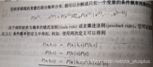 也就是乘法法则,任意个变量的联合概率分布,可以分解成一系列单变量的条件概率相乘的形式,链式法则从右往左看,两个一组逐渐生成联合分布。