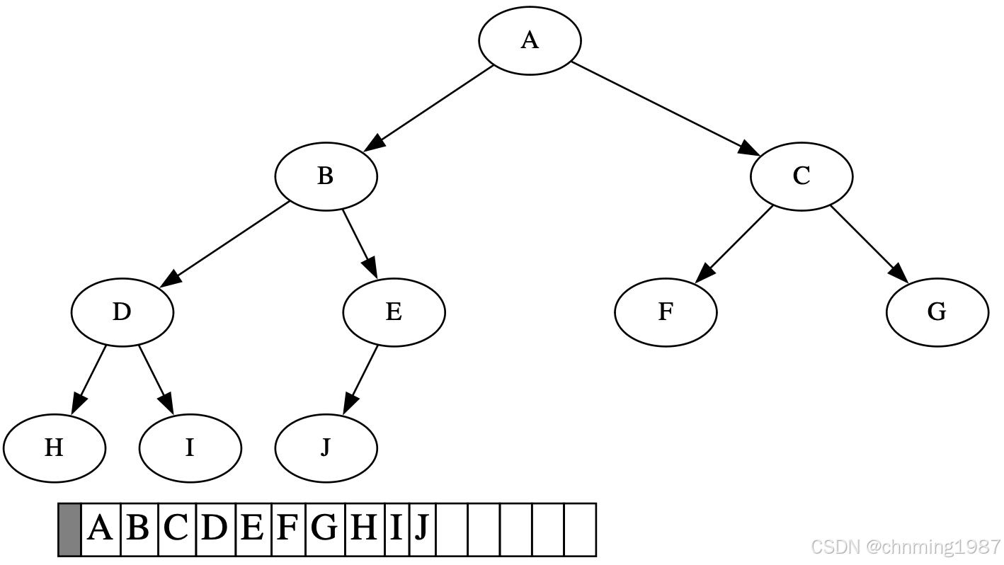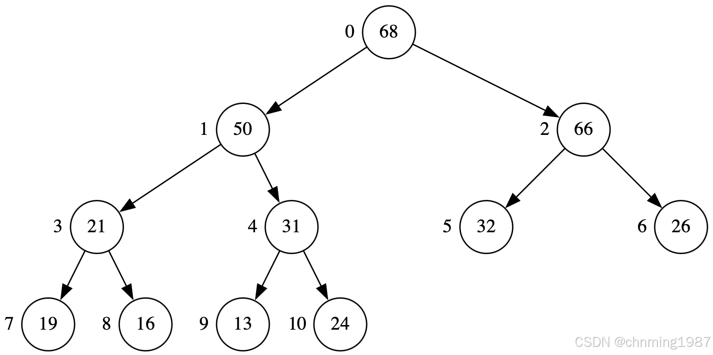因为完全二叉树节点紧凑的特性;我们可以采用array来存储所有节点;其中i标识父节点的索引,则其左右子几点的索引分别为2*i 及2*i+1;如此一颗完全二叉树可以通过array进行表示,同时我们称这种表示法为隐式表述法(implicit representation)。