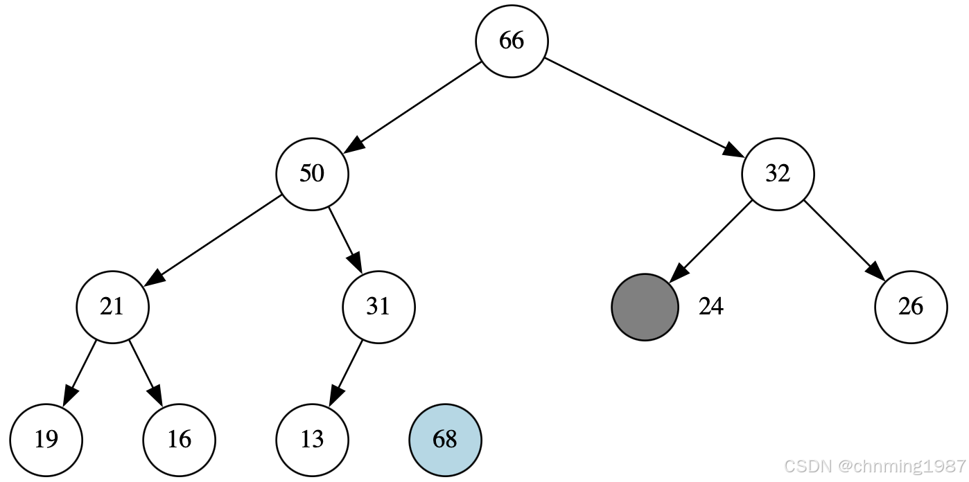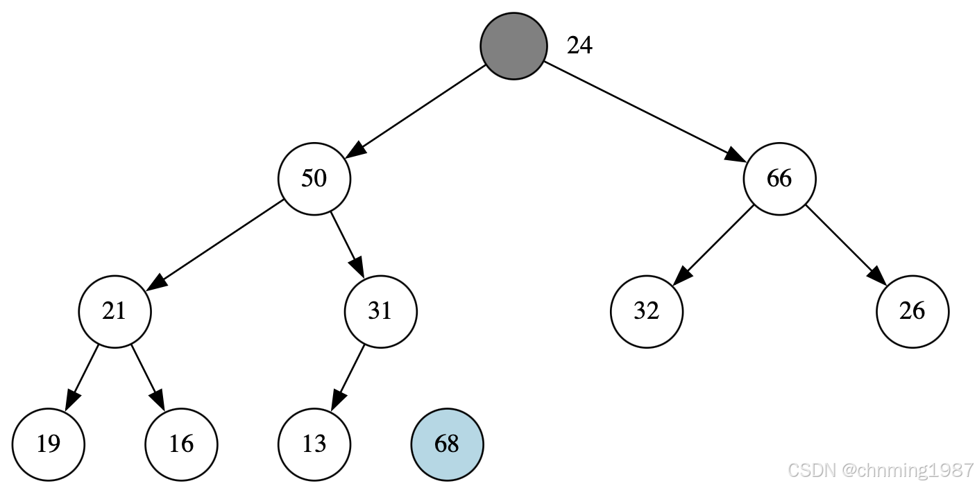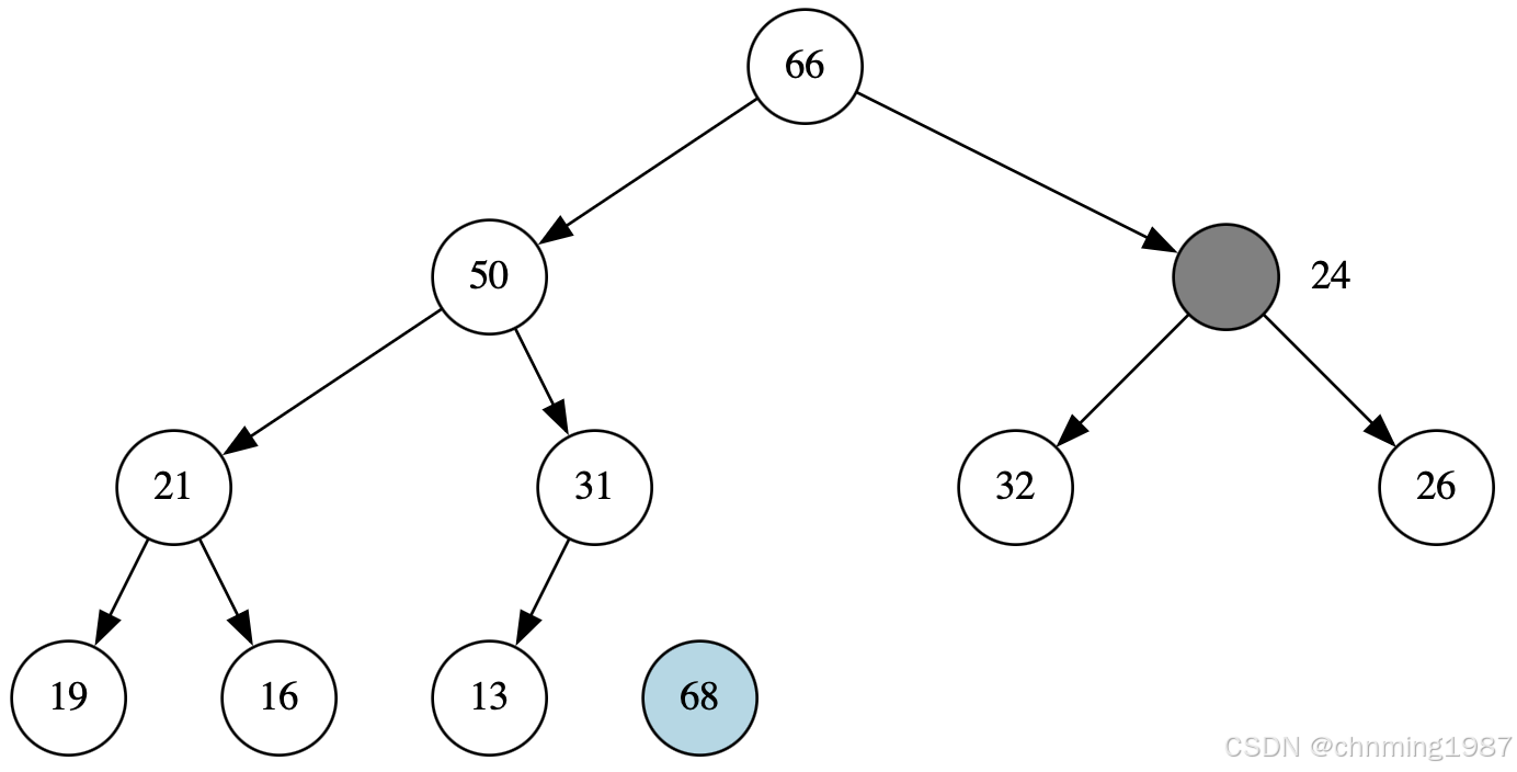 此时将,68节点放入最后节点,起始节点变成了空洞节点;而后24成为了待插入节点