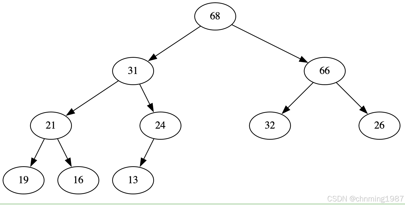 此时68节点存放在底层容器的最尾端,可通过c.back()获取key值最大的元素;同时剩余节点满足heap的特性;其代码如下:
