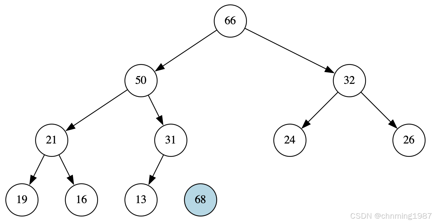 此时需要将新的节点加入heap中,假设加入新的节点的key为50.