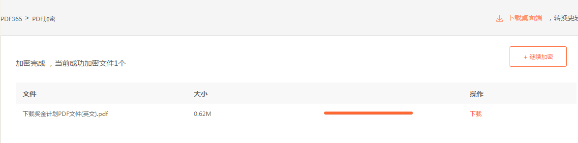 加密成功后,点击“下载”按钮,即可拿到加密后的文档;