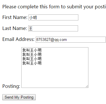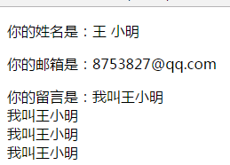 print "<p>你的姓名是:$name</p> <p>你的邮箱是:$email</p> <p>你的留言是:$posting</p>" ;?> </body> </html>