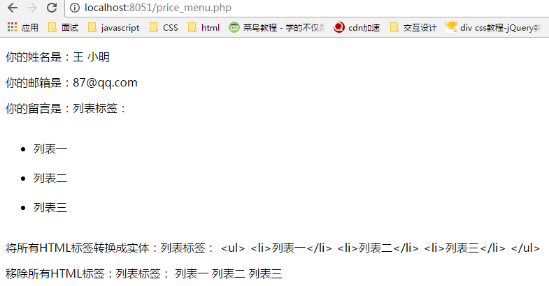 PHP是用来想浏览器发送数据的后端技术,发送的数据既可以是文本,也可以是HTML标签。,或者二者皆可。但是如果发送HTML标签,可能会破坏页面格式,或者引发安全问题(防止黑客通过表单提交JavaScript代码,使用跨站点脚本方式(cross-site scripting,XSS)攻击服务器)。所以PHP提供了用于处理PHP变量中的HTML标签的函数。
