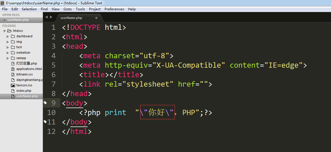 字符串是一对单引号或者双引号引用的任意类型的字符。字符串能够包含字母、数字、符号和空格的任意组合。同时还能包含变量。当字符中用双引号时,双引号前面必须要使用反斜杠(“\”’),或者用单引号替换。也即是在PHP语句中不能用相同类型的引号相互包裹。如果需要,则早在中间的引号的前面加上反斜杠。如图