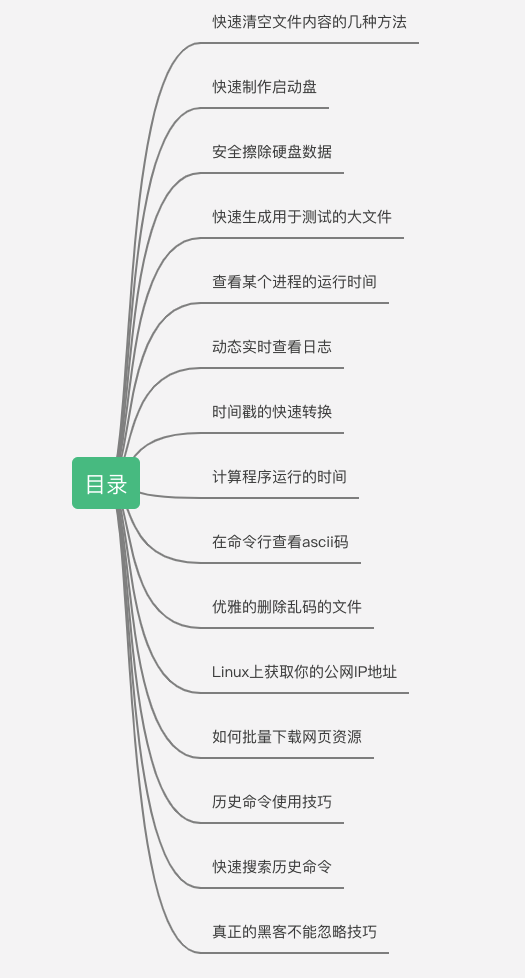 本文介绍了15个实用的Linux命令行技巧,包括快速清空文件、生成大文件、安全擦除硬盘、制作系统盘、查看进程运行时间、动态监控日志、时间戳转换、计算程序运行时间、查看ASCII码、删除乱码文件、获取公网IP、批量下载资源、高效使用历史命令、搜索历史命令以及隐藏命令历史记录。这些技巧能显著提高Linux用户的工作效率。