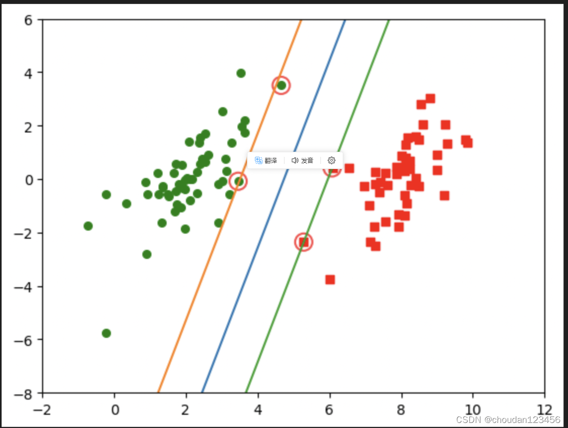 支持向量机算法利用松弛变量可以允许一些点到分类平面的距离不满足原先要求,从而避免这些点对模型学习的影响。