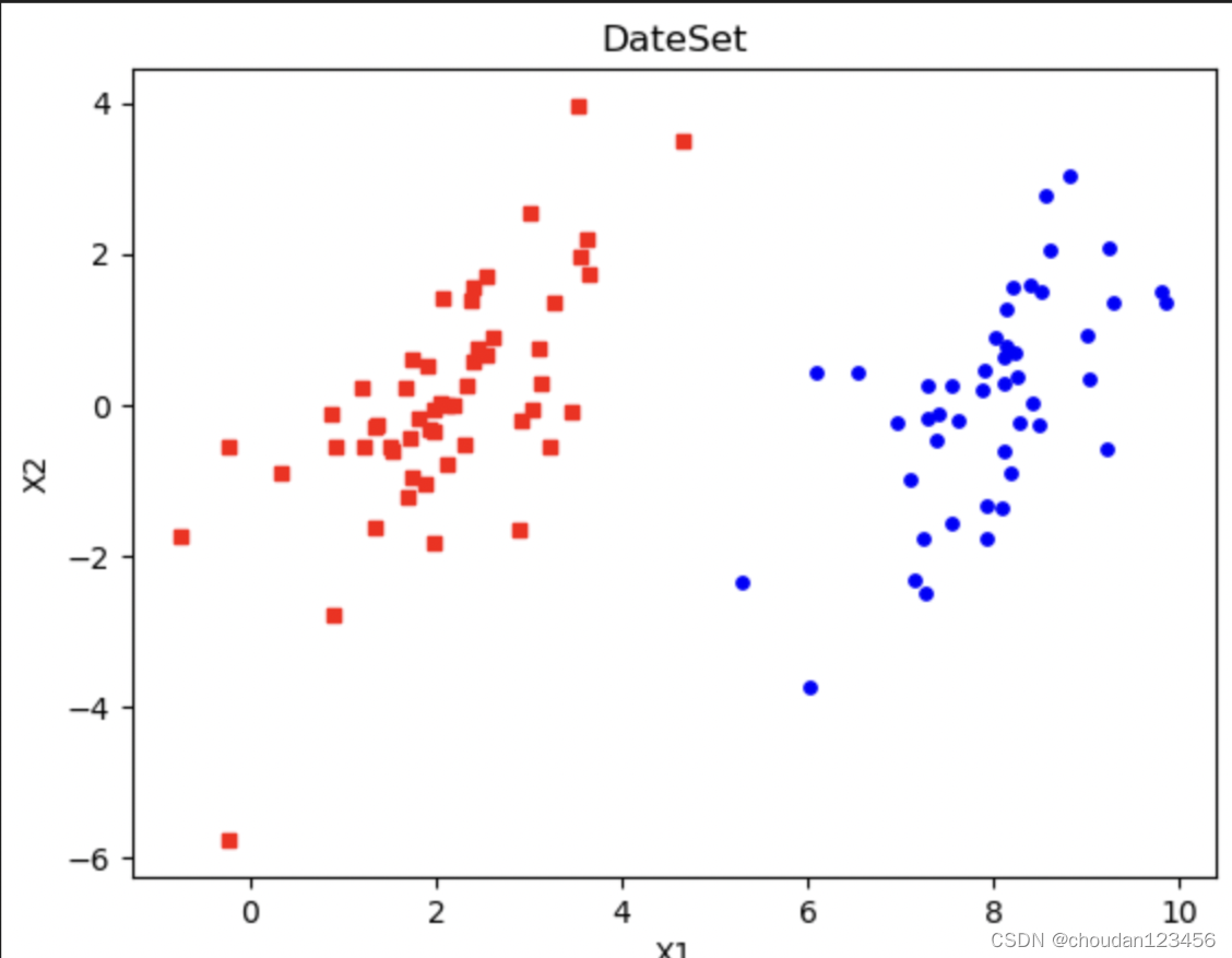 对于一个数据集合可以画一条直线将两组数据点分开,这样的数据称为线性可分(linearly separable)。如下图所示: