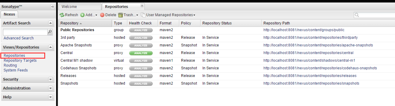 上面启动成功后,在浏览器是输入 localhost:8081/nexus