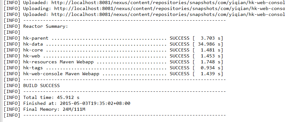 | <project xmlns= "http://maven.apache.org/POM/4.0.0" xmlns:xsi= "http://www.w3.org/2001/XMLSchema-instance" xsi:schemaLocation="http://maven.apache.org/POM/4.0.0 http://maven.apache.org/xsd/maven-4.0.0.xsd"> <modelVersion >4.0.0 </modelVersion > <!-- parent ,此为所有maven 项目的父类,父类中的<packaging> pom</packaging> 必须这样来写, --> <groupId >com.yiqian </groupId > <artifactId >hk-parent</ artifactId> <version >0.0.1-SNAPSHOT </version > <packaging >pom</packaging> <name >hk-parent</ name> <url >http://maven.apache.org </url > <properties > <!-- 父类中定义属性,可以在子类中使用 ,如在子类中可以这样使用:${project.build.sourceEncoding} --> <project.build.sourceEncoding >UTF-8 </project.build.sourceEncoding > <junit-version >3.8.1 </junit-version > <spring-version >4.1.6.RELEASE </spring-version > </properties > <!-- 在父类中定义,表示父类管理 hk-resoueces 项目,当父类执行编译时会自动 执行子模块的工程 编译 --> <modules > <module >hk-data</ module> <module >hk-core</ module> <module >hk-web</ module> <module >hk-resources</ module> <module >hk-tags</ module> <module >hk-web-console</ module> </modules > <!--