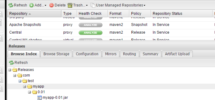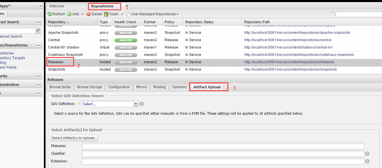 我们可以看到,只有要Releases 中才会有 Artifact Upload ,只有这个仓库才可以上传jar包