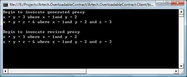 Console.WriteLine("\nBegin to invocate revised proxy");