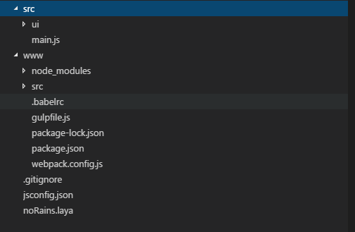 - 在项目根目录新建文件夹www(其实开发文件夹应该叫做src的,无奈被默认的目录占用了,src这个文件夹不能动他,因为构建的ui文件类会在里面,稍后我们输出webpack的main.js也会放在里面。然后项目编译时会用到src)。