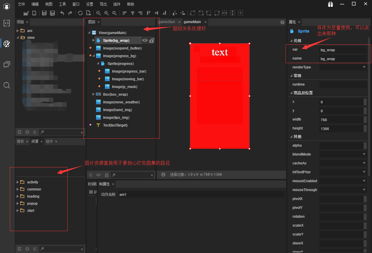 在进入main文件之前讲一讲这两点:图集打包与资源加载。