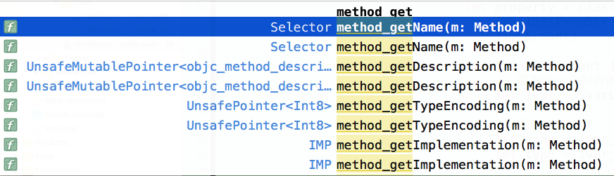 2.获取类的成员变量数组 的方法,按住option键后查看返回结果的类型并不是数组,但是可以遍历,遍历得到的数据是ivar ,