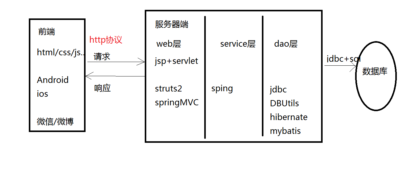 常见的web服务器:tomcat(中小型,免费,支持Servlet和JSP规范),WebLogin(大型,收费,Oracle公司),WebSphere(IBM,大型,收费),JBoss(一般与tomcat绑定使用)