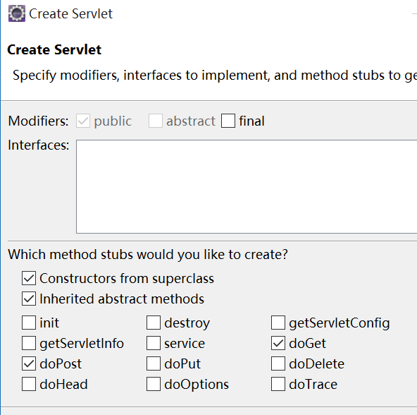 Servlet规范要求:Servlet程序必须实现javax.Servlet.http.Servlet接口。在实际开发中,一般不会直接去实现Servlet接口,因为那样需要覆盖的方法太多,一般继承HttpServlet,而HttpServlet的父类GenericServlet已经实现了Servlet接口。