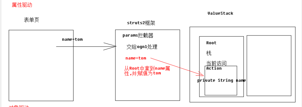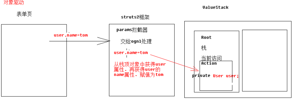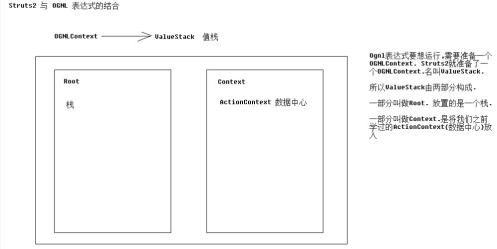 ValueStack(值栈)是struts的一个接口,OgnlValueStack是ValueStack的实现类,客户端发起一个请求,struts2架构会创建一个action实例,同时创建一个OgnlValueStack值栈实例,OgnlValueStack贯穿整个action的生命周期,struts2中使用ognl将请求action的参数封装为对象,存储到值栈中,并通过ognl表达式读取值栈中的对象属性值。