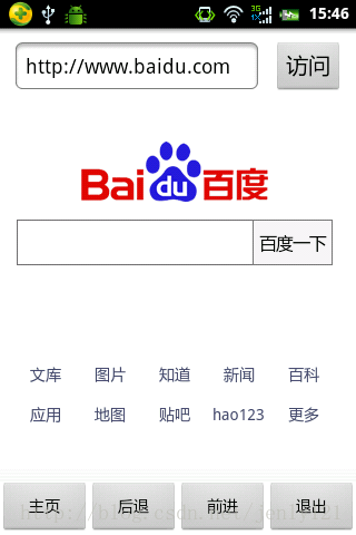 对于WebView组件、虽然在做非浏览器app的时候用到的不多、但还是对这个组件的用法有个基本的了解、下面通过实现一个简单的浏览器的基本功能来熟悉下WebView组件、和它的一些基本使用方法、