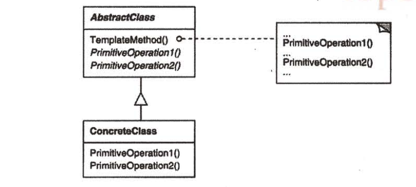 定义一个操作中的算法骨架(稳定点),而将一些步骤延迟(变化点)到子类中,Template method 使子类可以不改变一个算法的结构即可重定义(override 重写)该算法的某些步骤。