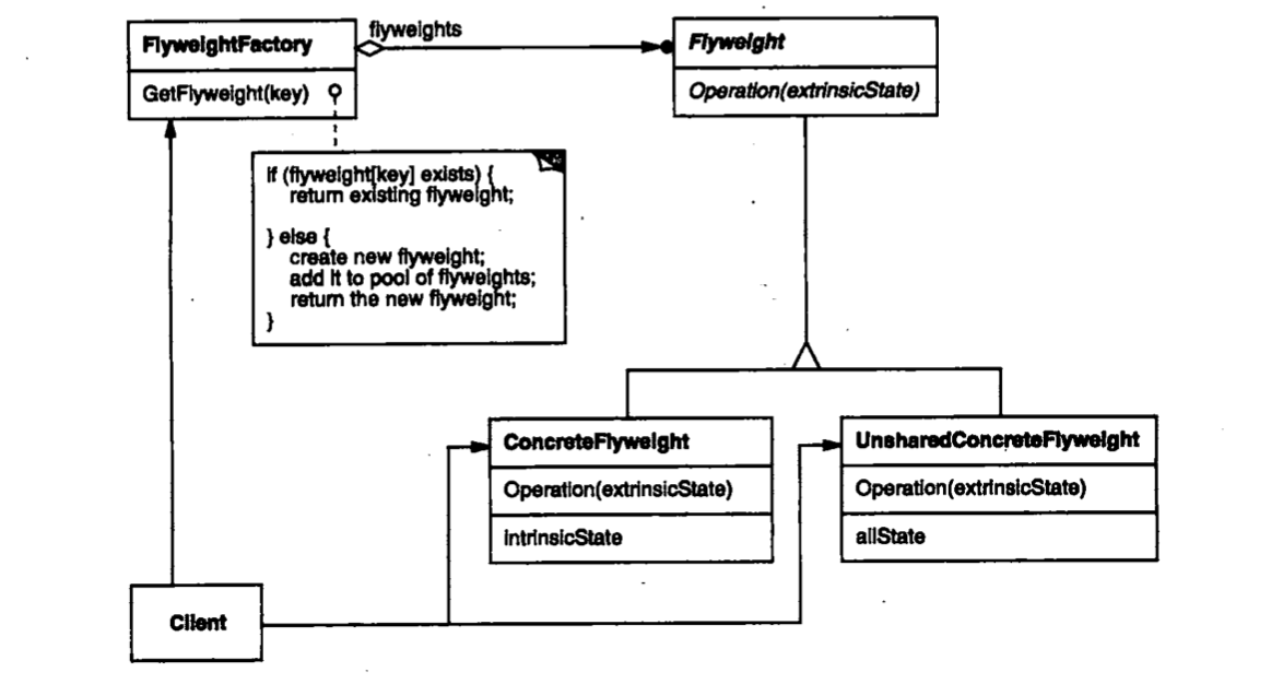 - Flyweight 采用对象共享的做法来降低系统中对象的个数,从而降低面向对象带来的内存压力