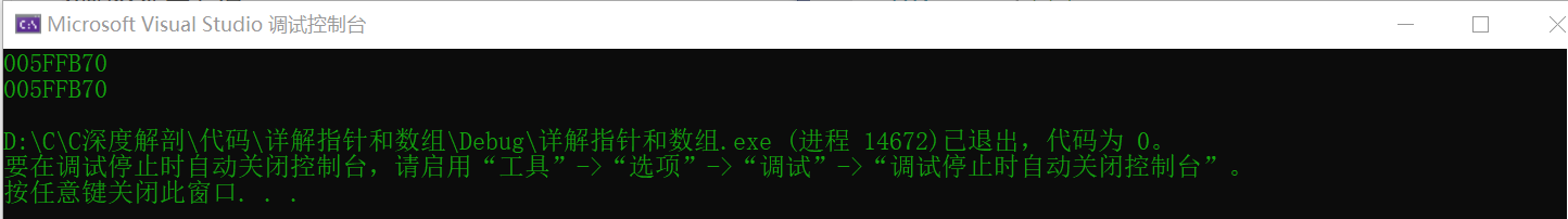 printf("%p\n", &arr);//整个数组的地址打印出来的结果和首元素地址一样