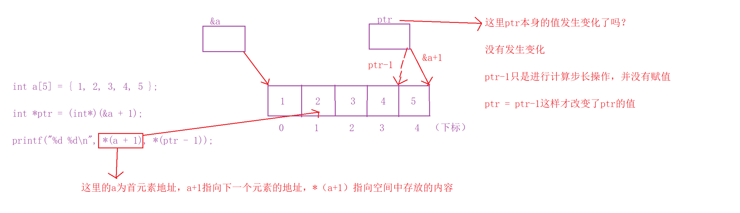 3、&a代表的是取出整个数组的地址,+1,代表该数组的下一个数组指向的地址
