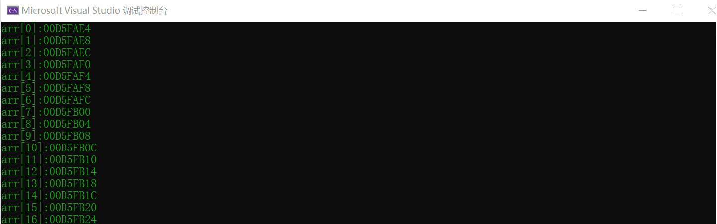 printf("arr[%d]:%p\n",i,&arr[i]);