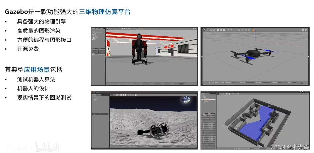 3. Gazebo 是一款功能强大的三维物理仿真平台