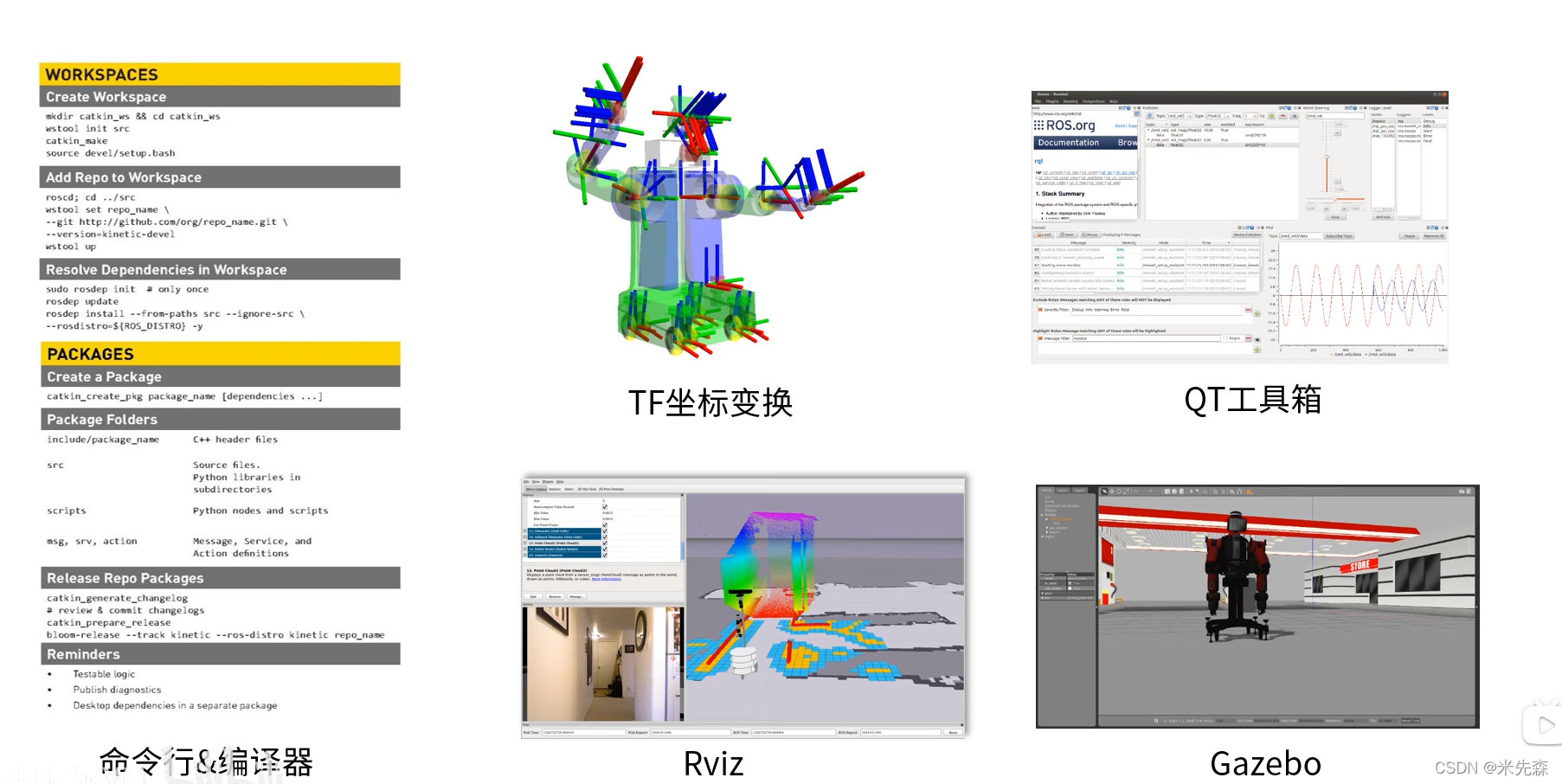 (1) rostopic、(2) rosservice、(3) rosnode:用来显示系统中所有节点信息、(4) rosparam、(5) rosmsg、(6) rossrv