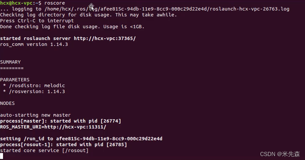 roscore: 是ROS首先要运行的一条命令,运行ROS master