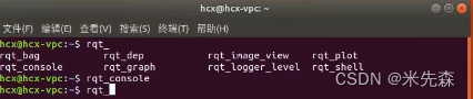 直接输入rqt打开下面的界面:这里面集合了所有的rqt 显示的内容,在上面一栏中选择打开即可
