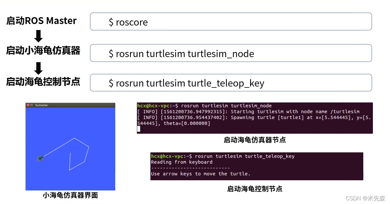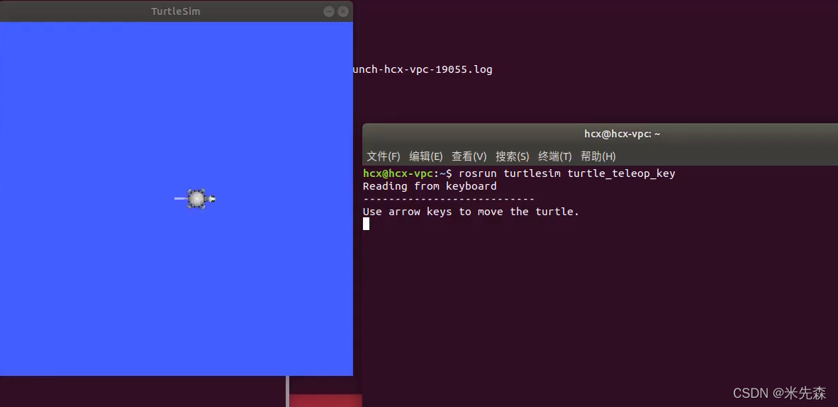 (2) 再来启动turtlesim: rosrun turtlesim turtlesim_node