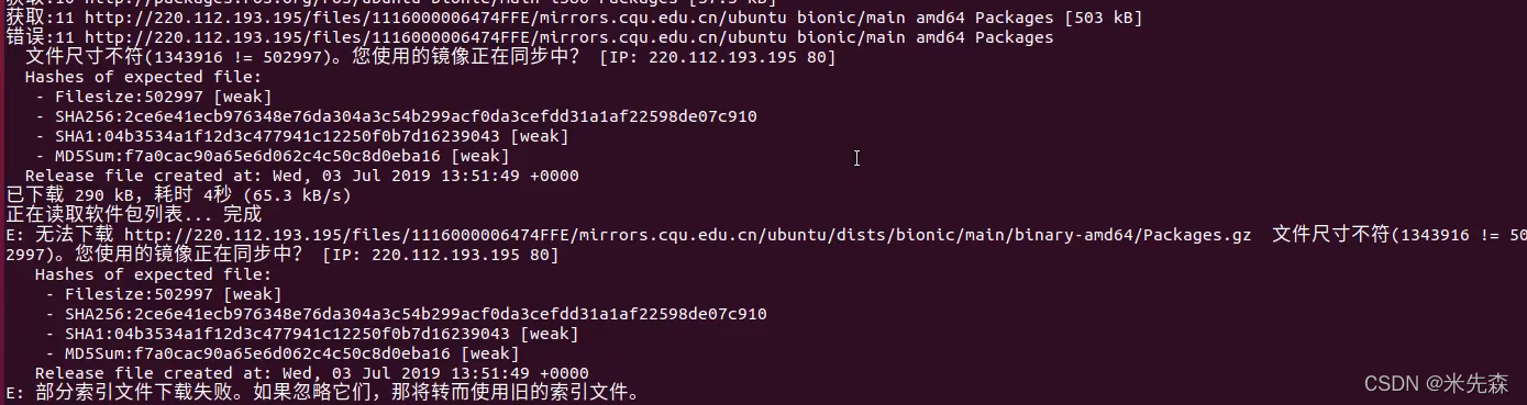 (1) 软件源的问题,原来用的aliyun, 在安装过程中改动了一些地方sources,list文件,没有备份以至于后面改不回来包很多错误【改动之前要备份!!!!!千万要注意】,后来换成了清华源,相应改动了sources.list文件中的内容。