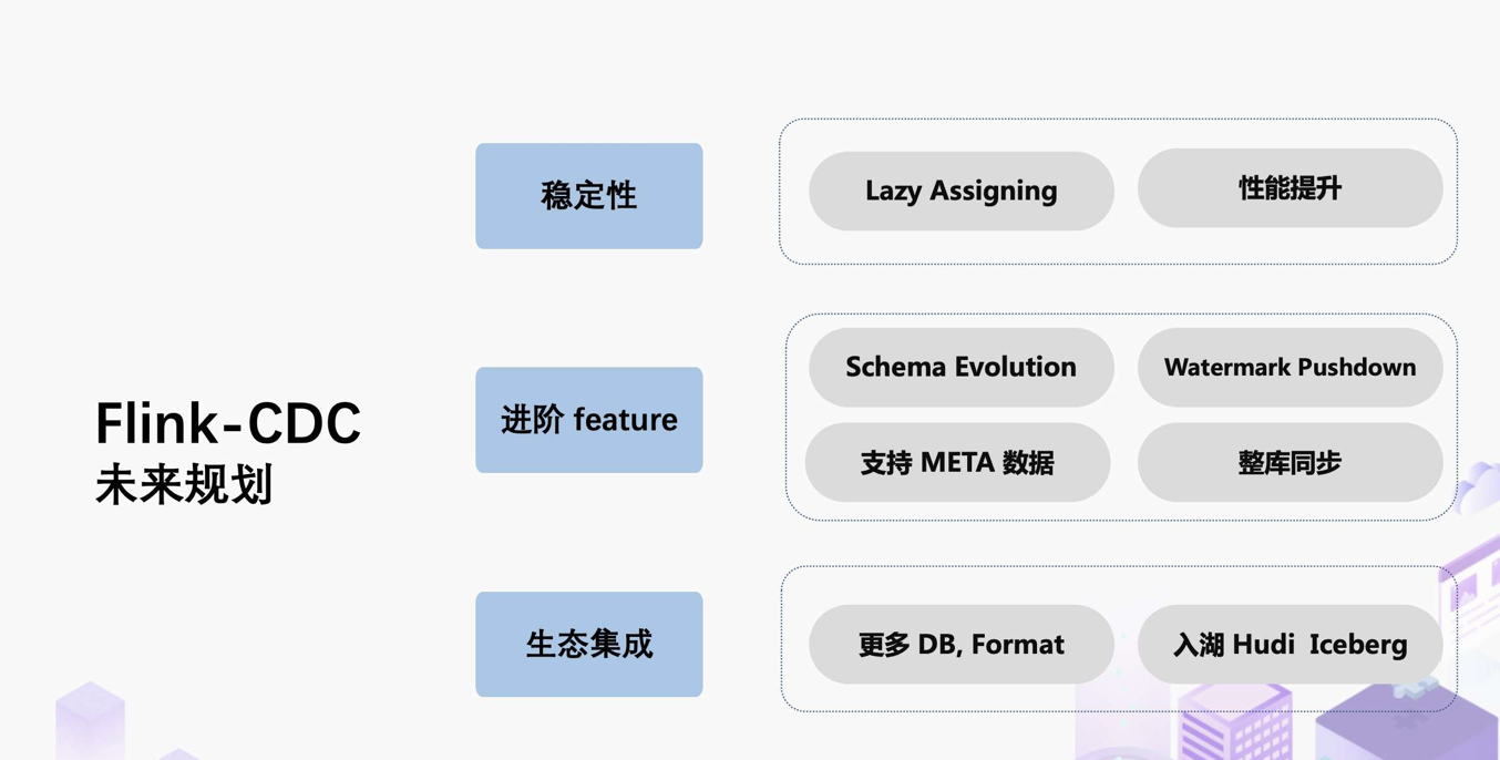 关于 CDC 项目的未来规划,我们希望围绕稳定性,进阶 feature 和生态集成三个方面展开。