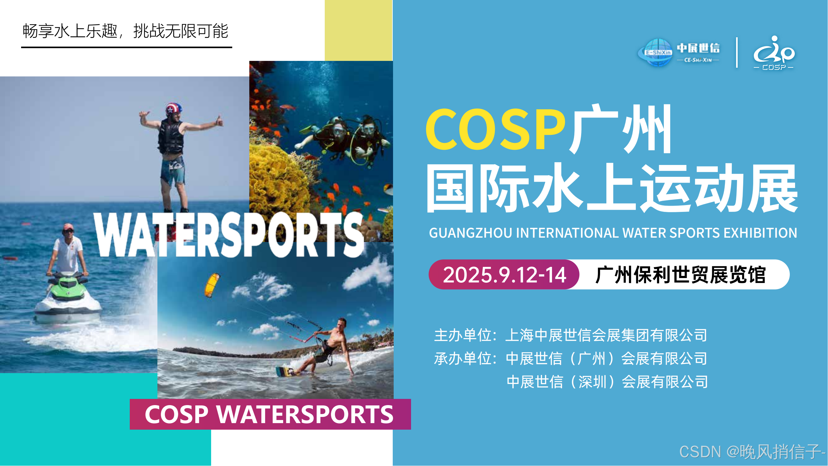COSP 广州水上运动展会,作为行业内的翘楚,承载着推动水上运动产业发展的重要使命,将于 2025.9.12-14 在广州保利世贸展览馆 盛大开幕。本次展会凭借其卓越的影响力和广泛的号召力,吸引了来自世界各地的行业巨头、创新企业以及众多水上运动爱好者齐聚一堂。
