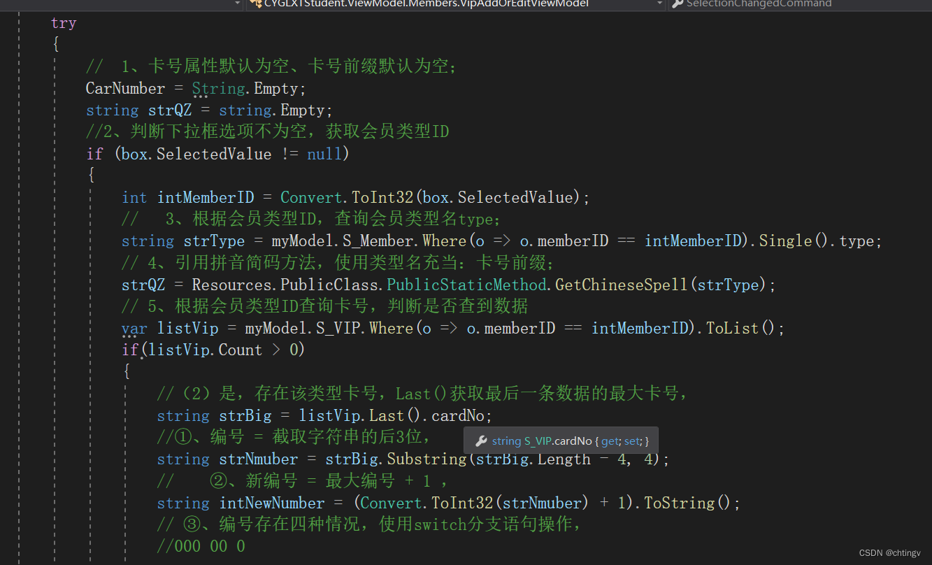 - 会员卡的查询时是连表查询所以需要新建一个Vo类(注意Visibility的字段只能是其修饰)