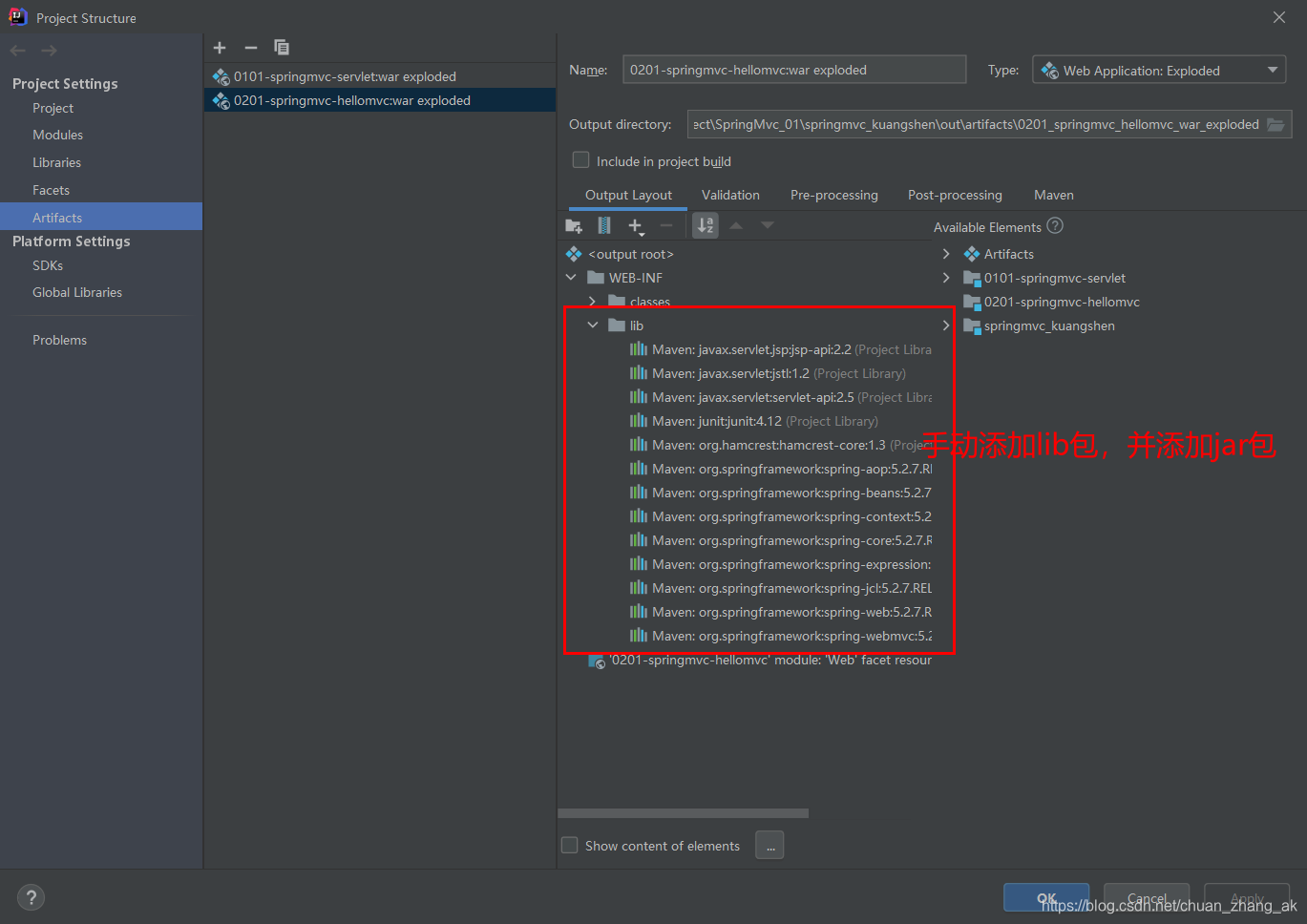 如果jar包存在,显示无法输出,就在IDEA的项目发布中,添加lib依赖!