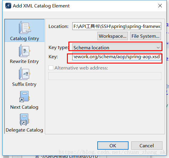 2、复制key,及就是http://www.springframework.org/schema/aop/spring-aop.xsd